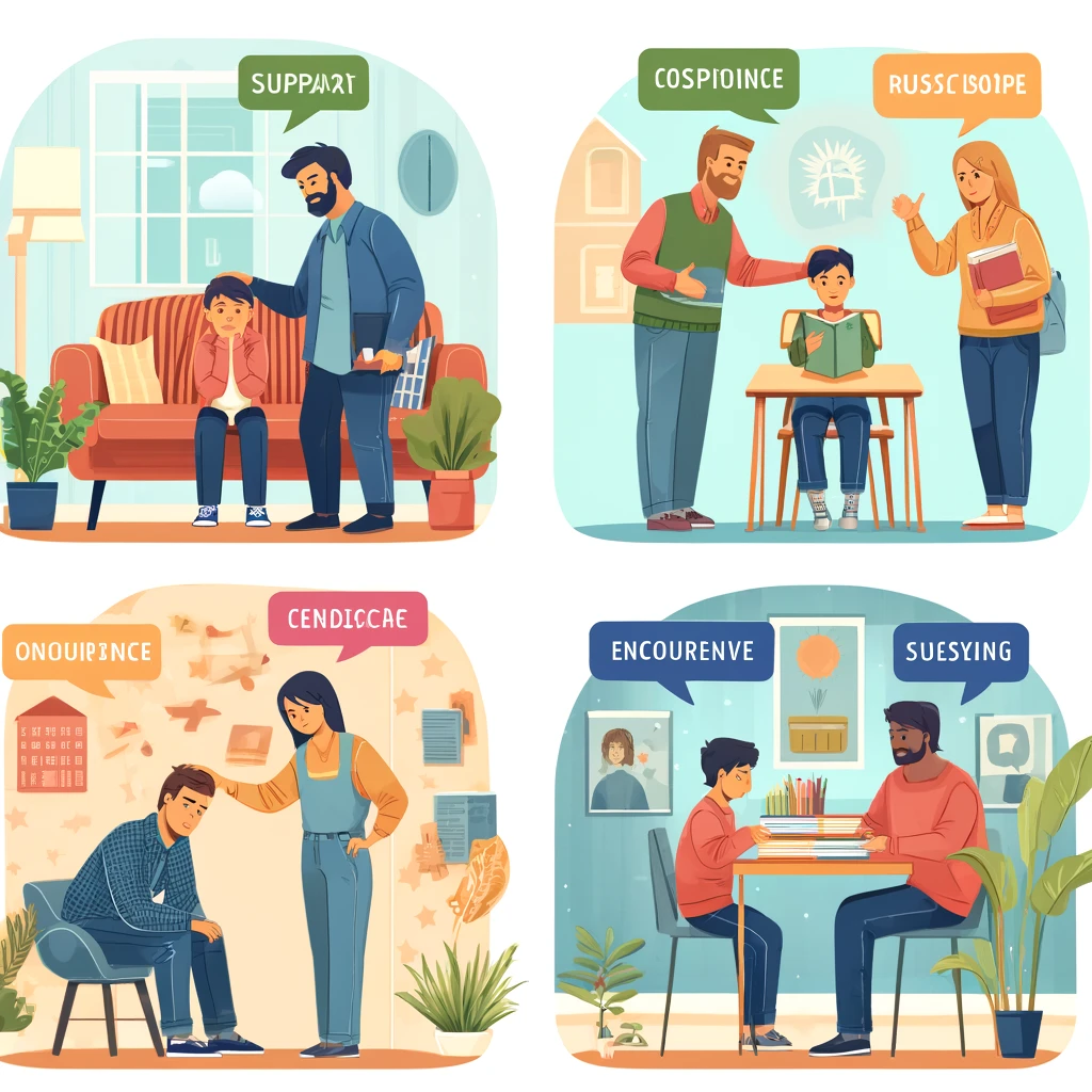 - 예시: 자녀가 숙제를 하다 어려움을 겪을 때, "네가 힘들어하는 게 보여. 함께 문제를 해결해보자. 넌 충분히 할 수 있어"라고 말하며 지지합니다.