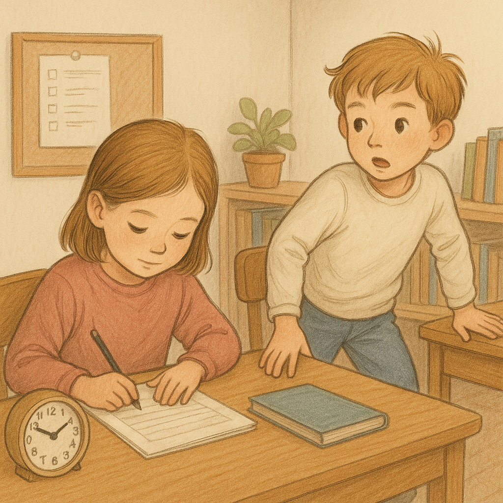 - 과제를 놀이화: 정리 시간에 타이머 설정해 ‘누가 더 빨리?’ 대결